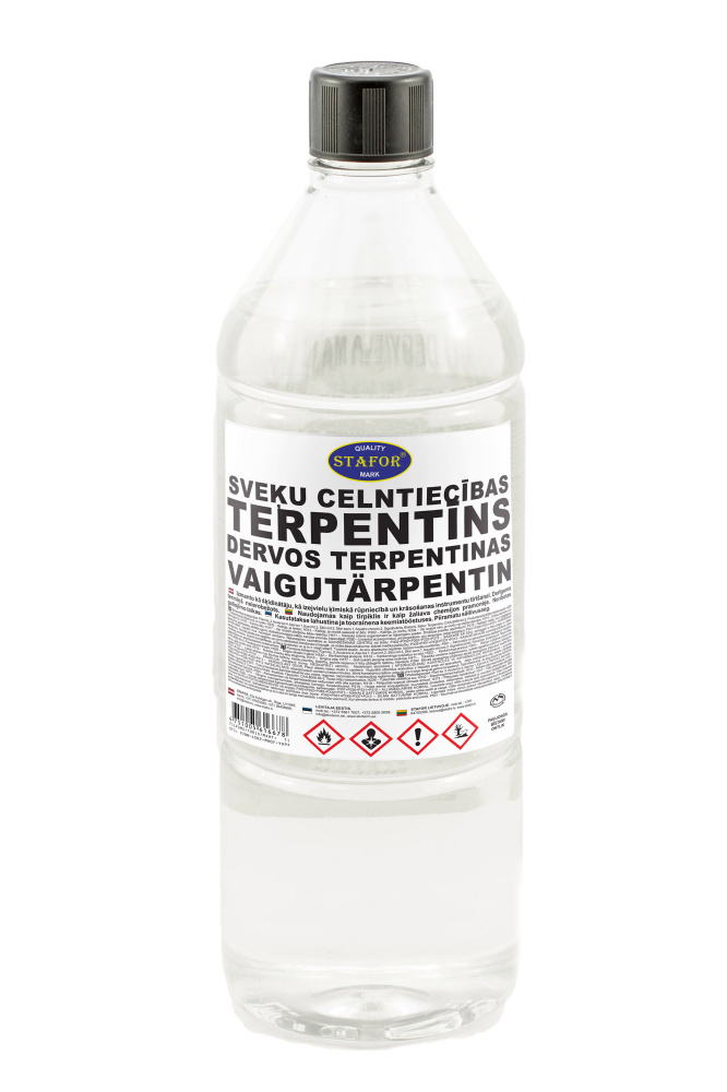 Bīstamības kategorijas: Flam liq. 3, Acute tox 4, Asp tox 1, Eye irrit.2, Skin irrit 2, Skin sens 1, Aquatic chronic 2. Signālvārds: Bīstami. Satur: Terpentīns, CAS:8006-64-2. Produkta iedarbības raksturojums: H226 – Uzliesmojošs šķidrums un tvaiki; H332 – Kaitīgs, ja ieelpo; H312 – Kaitīgs, ja nonāk saskarē ar ādu; H302 – Kaitīgs, ja norīts; H304 – Var izraisīt nāvi, ja norīts vai iekļūst elpceļos; H319 – Izraisa nopietnu acu kairinājumu; H315 – Kairina ādu; H317 – Var izraisīt alerģisku ādas reakciju; H411 – Toksisks ūdens organismiem ar ilglaicīgām sekām. Drošības prasību apzīmējumi: P210 – Nelietot vietās, kur ir sastopams karstums, dzirksteles, atklāta uguns, statiskā enerģijas izlāde, karstas virsmas. Nesmēķēt; P280 – Izmantot aizsargcimdus, aizsargdrēbes, acu aizsargus, sejas aizsargus; P301+P330+P331+P310 – NORĪŠANAS GADĪJUMĀ: Izskalot muti. Neizraisīt vemšanu. Nekavējoties sazināties ar SAINDĒŠANĀS CENTRU vai ārstu; P302+P352+P362+P332+P313 – SASKARĒ AR ĀDU: nomazgāt ar lielu ziepju un ūdens daudzumu. Novilkt piesārņoto apģērbu un pirms atkārtotas lietošanas izmazgāt. Ja rodas ādas iekaisums: lūdziet mediķa palīdzību; P305+P351+P338+P337+P313 – SASKAĒ AR ACĪM: uzmanīgi izskalot ar ūdeni vairākas minūtes. Izņemt kontaktlēcas, ja tās ir ievietotas un ja to ir viegli izdarīt. Turpināt skalot. Ja acu iekaisums nepāriet: lūdziet mediķu palīdzību; P501 – Atbrīvoties no satura/tvertnes saskaņā ar vietējiem, reģionāliem un starptautiskiem noteikumiem.